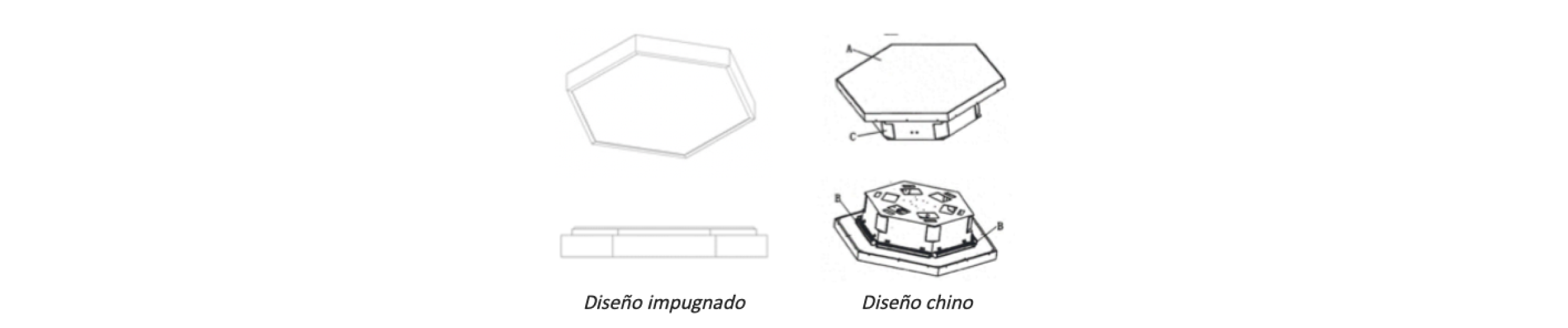En la comparación de los diseños, la Sala de Recursos entendió correctamente que los diseños solo se parecen en la forma hexagonal del cuerpo luminoso y difiere en todas las demás características. Por ejemplo, el diseño impugnado se fija a la superficie mediante un soporte prácticamente imperceptible, mientras que el diseño anterior tiene una fijación más ancha, de forma que la luminaria queda ubicada significativamente más lejos de la superficie, lo que provoca un efecto luminoso completamente diferente. Asimismo, en el diseño impugnado existe un marco que rodea el cuerpo luminoso del diseño controvertido, algo que no existe en el diseño anterior. En consecuencia, las marcadas diferencias no escaparían a la percepción de un usuario informado.